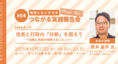 住民と行政の「分断」を超えて ~協働と共感の地域マネジメント~ 地域社会の課題解決に取り組むプラットフォームである「地域ともいきラボ」は、交流イベント「つながる実践報告会」をハイブリッド形式で開催します。第4回となる今回は、「住民と行政の『分断』を超えて~協働と共感の地域マネジメント~」をテーマに、地域での具体的な実践事例を学び、参加者同士がディスカッションを通して交流します。 今回の... |
